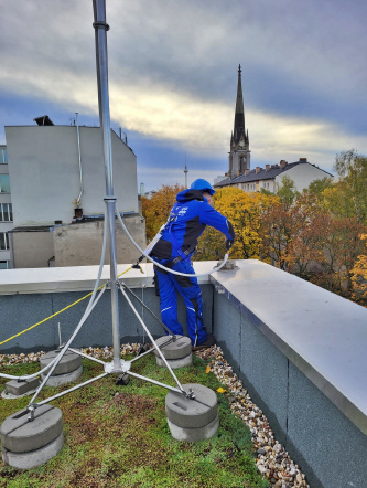 Hier installieren wir ein Blitzschutzsystem mit der patentierten HVI®- Leitung (High Voltage Insulation) der Firma DEHN.