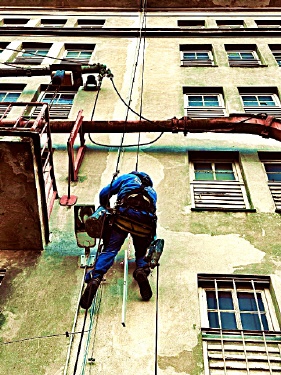 Wo Hebebühnen und Baugerüste nicht aufgestellt werden können und Leitertechnik nicht mehr ausreicht, kommen unserer geschulten Indutriekletterer zum Einsatz